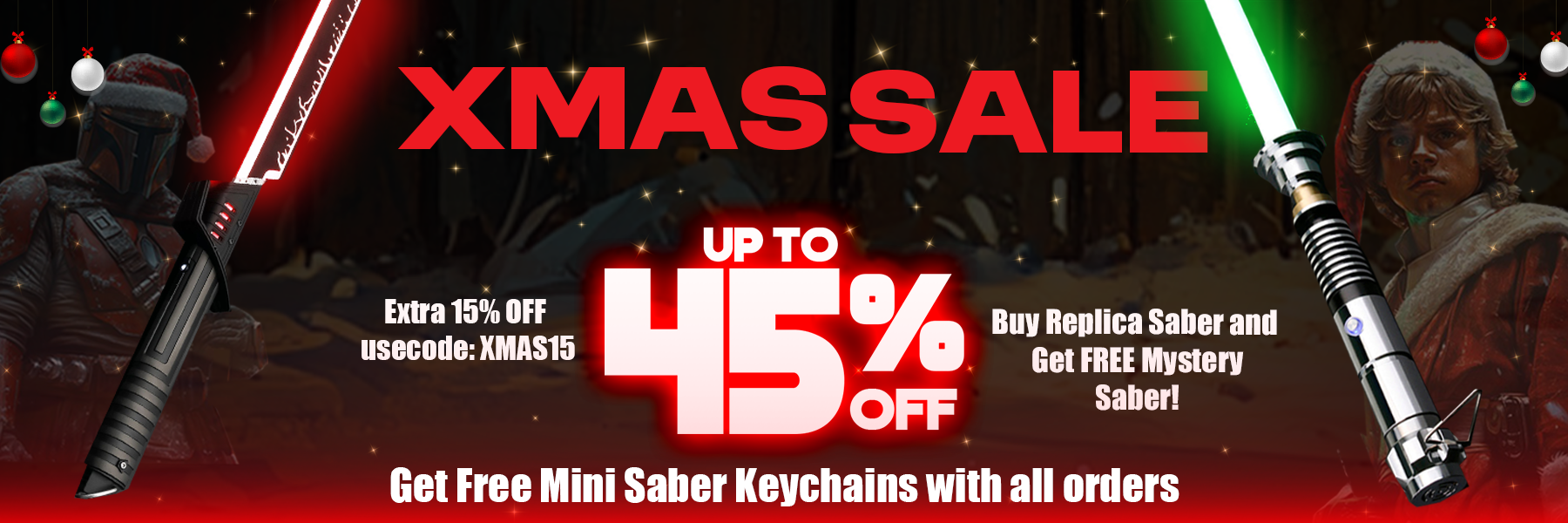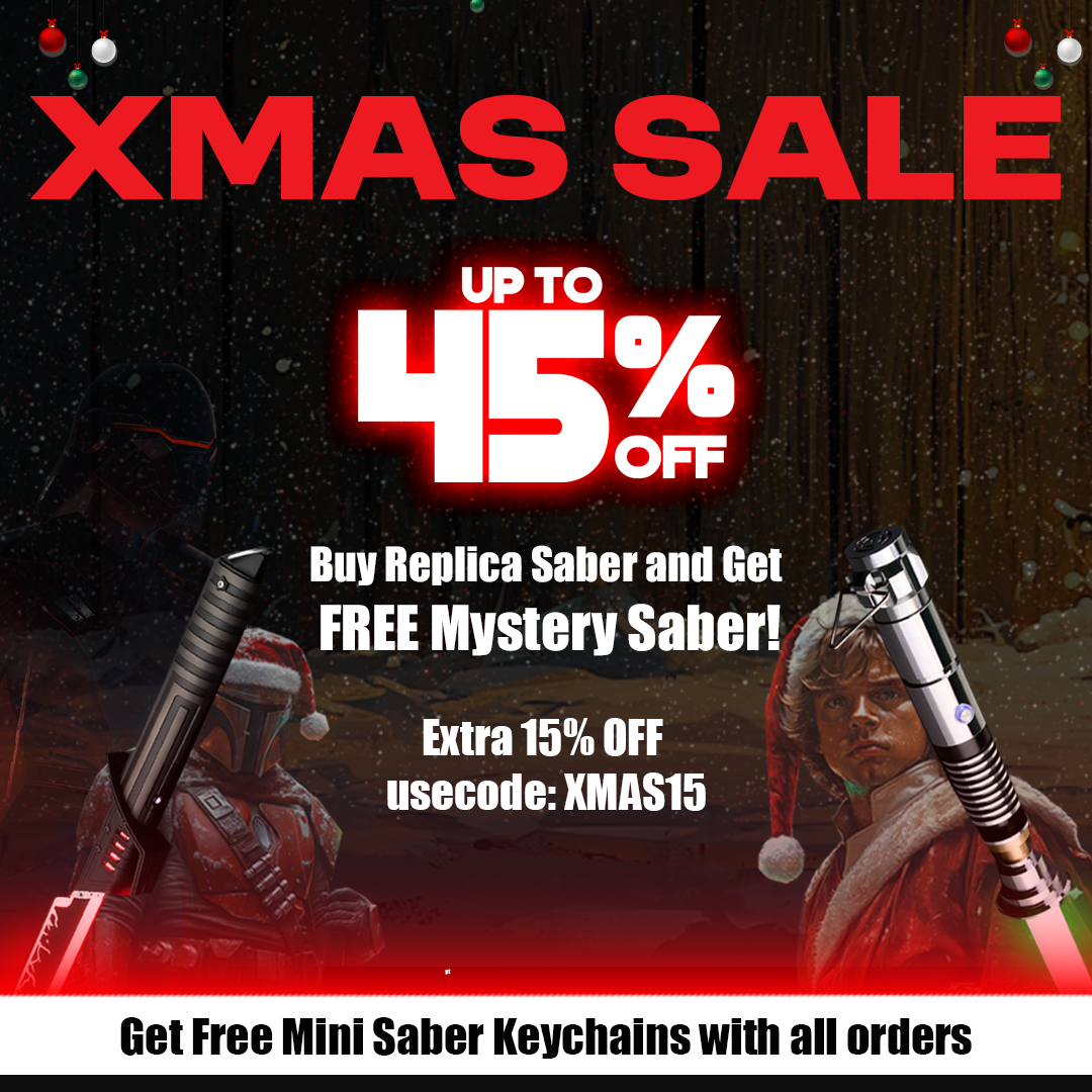 Dive into the spirit of the holiday season with our thrilling Buy a Replica Saber, Get a Free Mystery Saber offer! Purchase a replica lightsaber and get a mystery saber with no additional costs. This offer is perfect for Star Wars fans who are looking to add an unexpected surprise in their lightsaber collection. This deal adds a little bit of mystery and excitement into your Christmas shopping. Don’t wait—embrace the adventure and double the thrill of wielding the Force today!